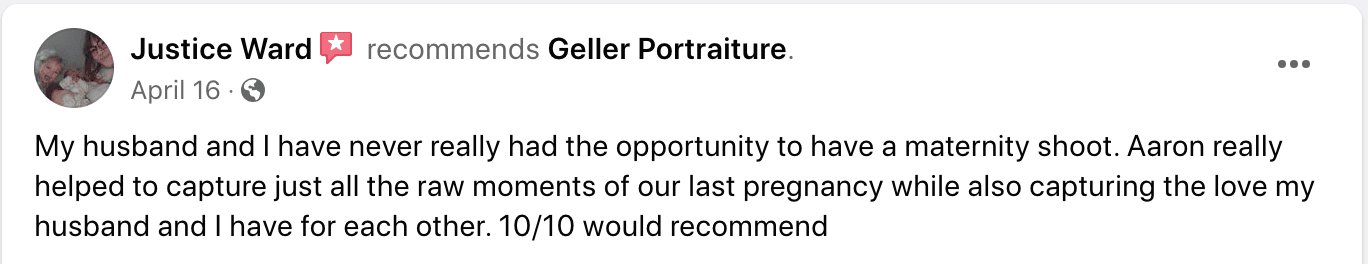 ✅ Follow us on Instagram (click here) to see samples from recent sessions (@GellerMaternity). You do not need to have an IG account to view our account.